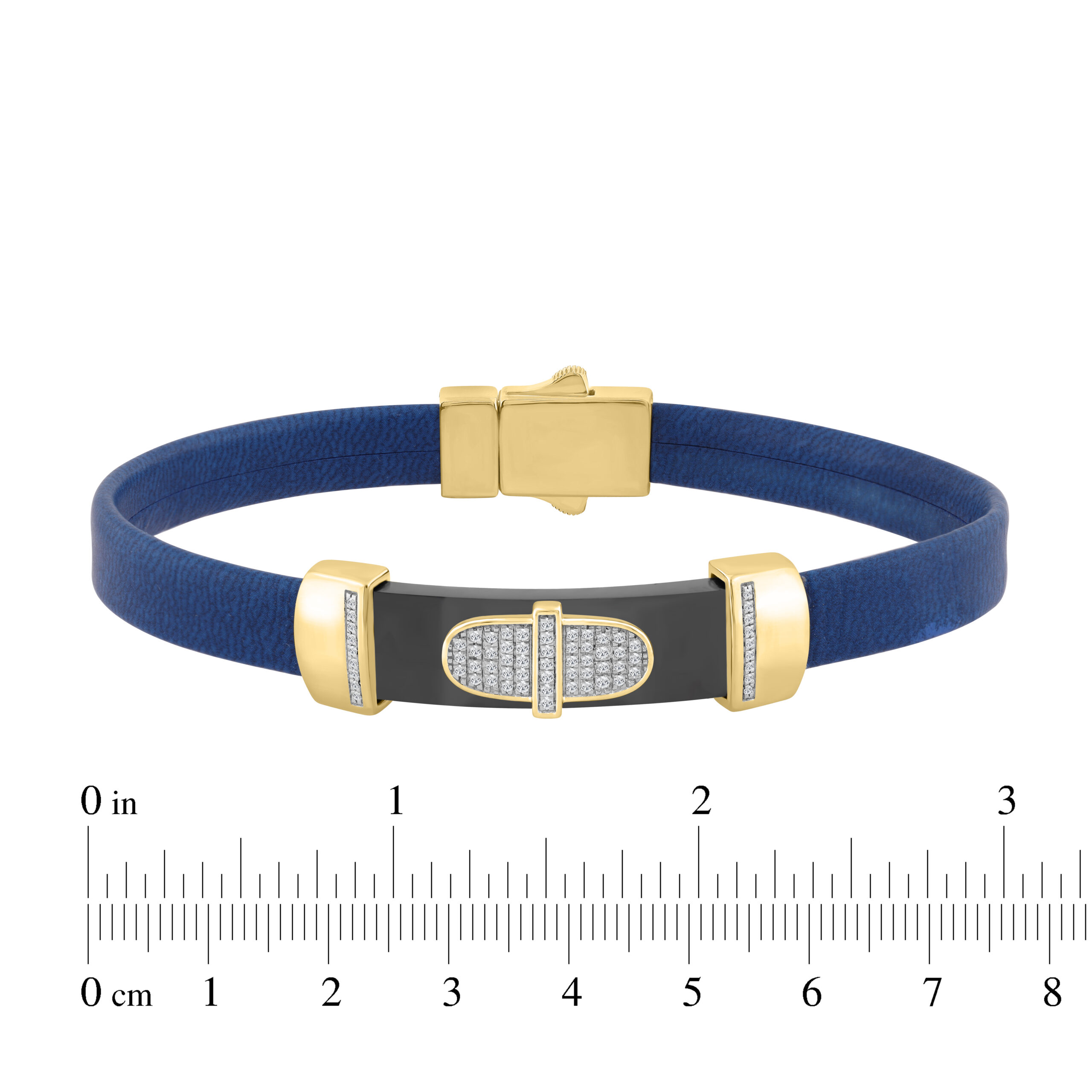 0.25 Ct Round Diamond Men’S Bracelet Yellow Gold With Rubber Strap (Blue/Black)