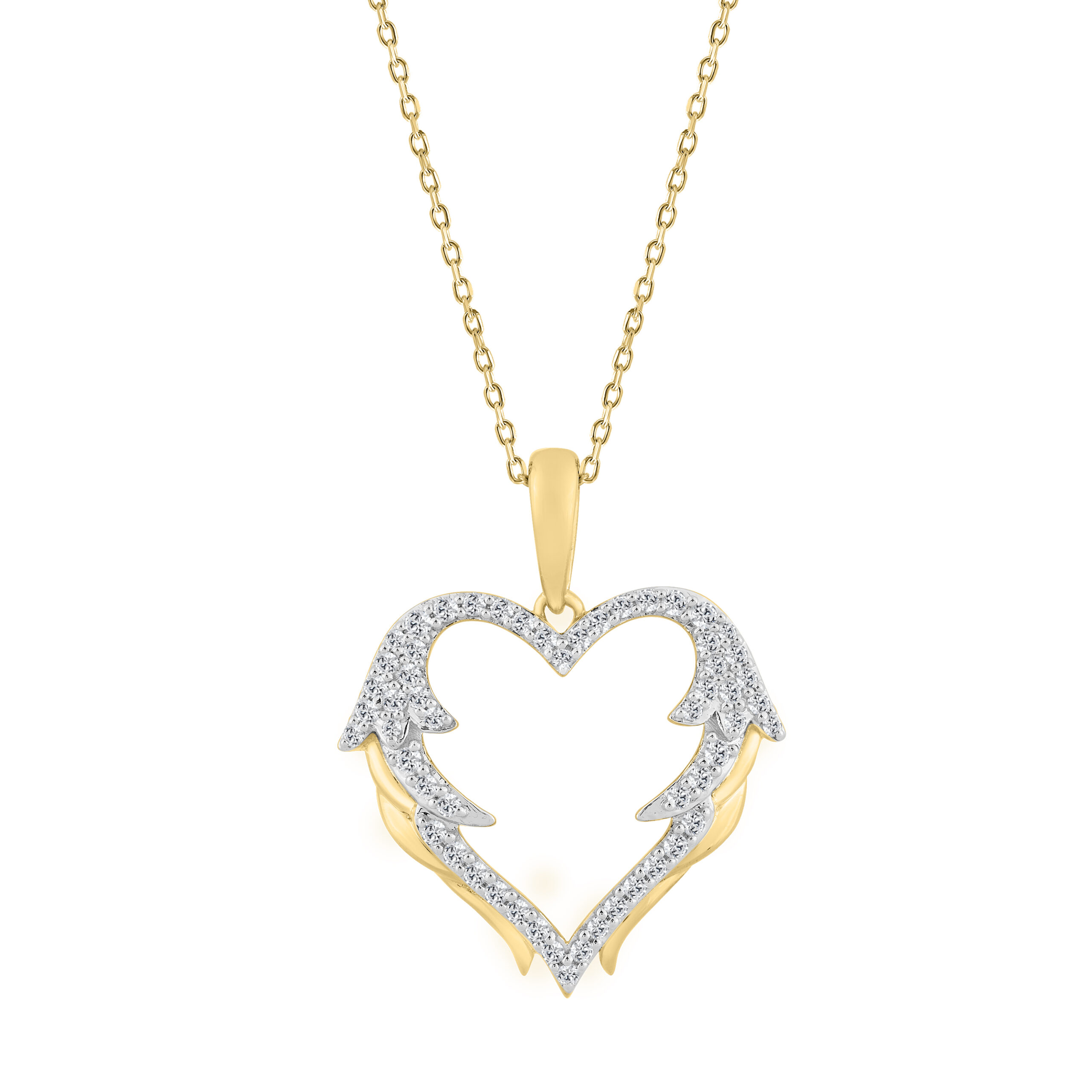10K YELLOW GOLD DOUBLE HEART DIAMOND PENDANT WITH CHAIN 0.15CT ROUND DIAMOND LADIES JEWELRY $559.99