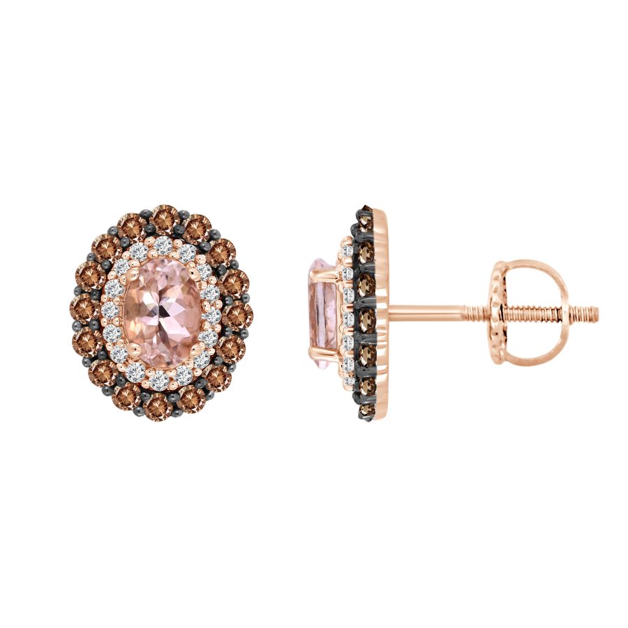 EARRINGS 1.65CT ROUND/OVAL DIAMOND 10K MORGANITE STONE ROSE GOLD