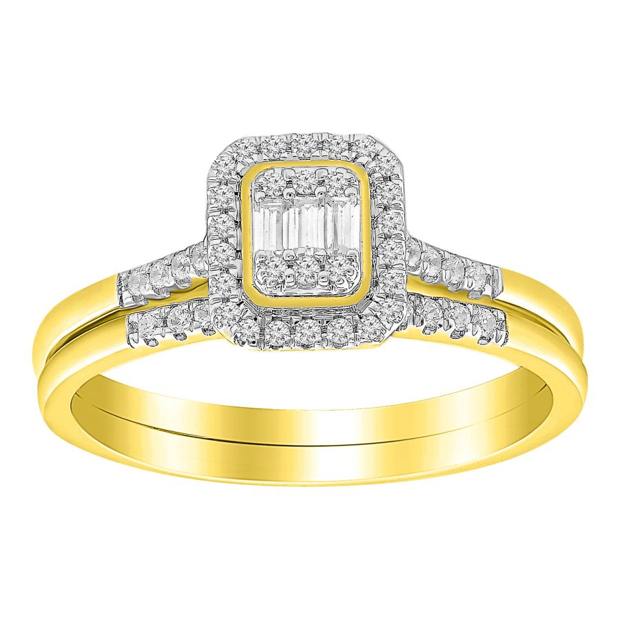LADIES BRIDAL SET 0.25CT ROUND/BAGUETTE DIAMOND 10K YELLOW GOLD
