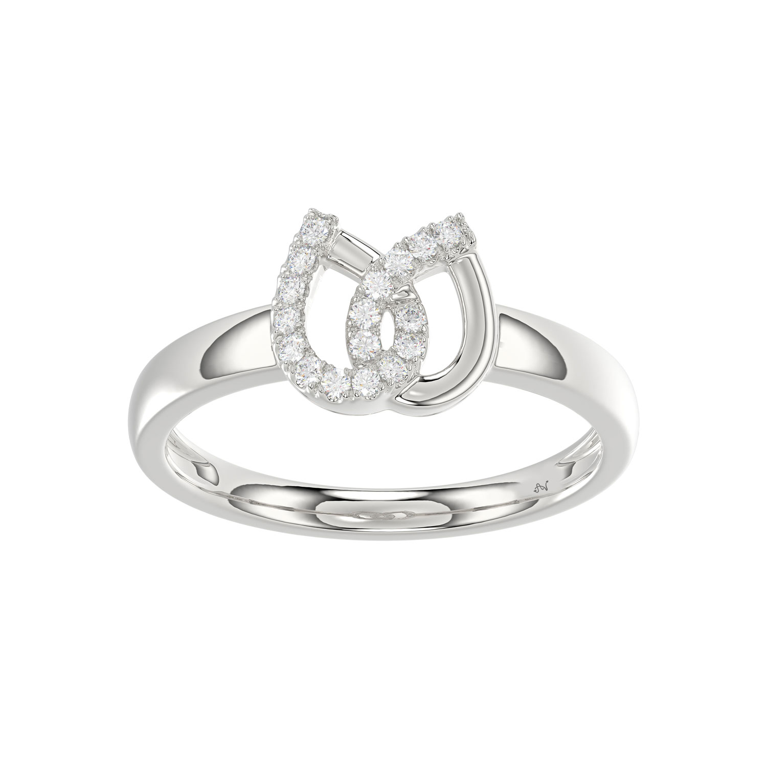 Ladies Lucky Horseshoe Fashion Ring 0.10Ct Round Diamond Sterling Silver White – Double Horseshoe Fashion Jewelry