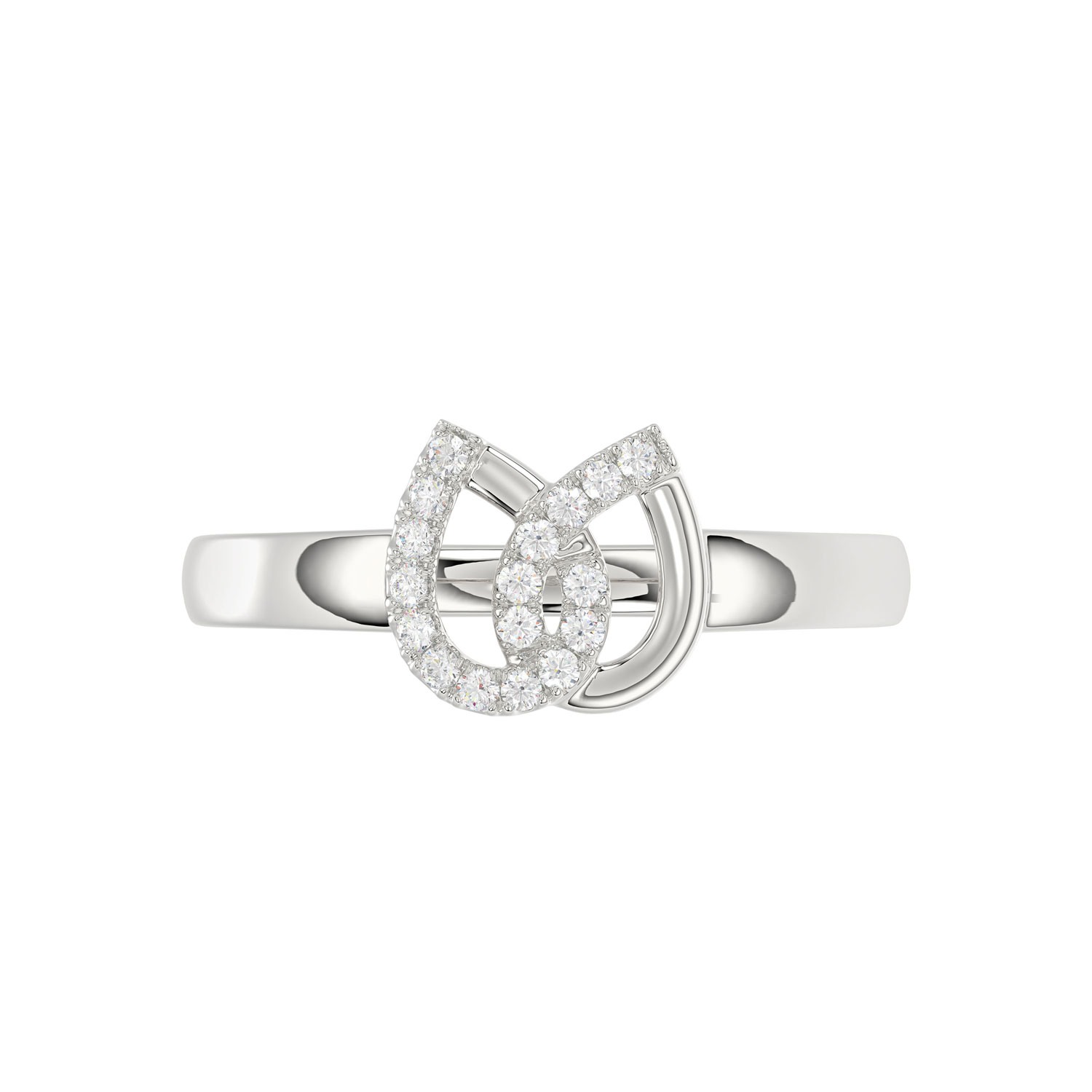 Ladies Lucky Horseshoe Fashion Ring 0.10Ct Round Diamond Sterling Silver White – Double Horseshoe Fashion Jewelry