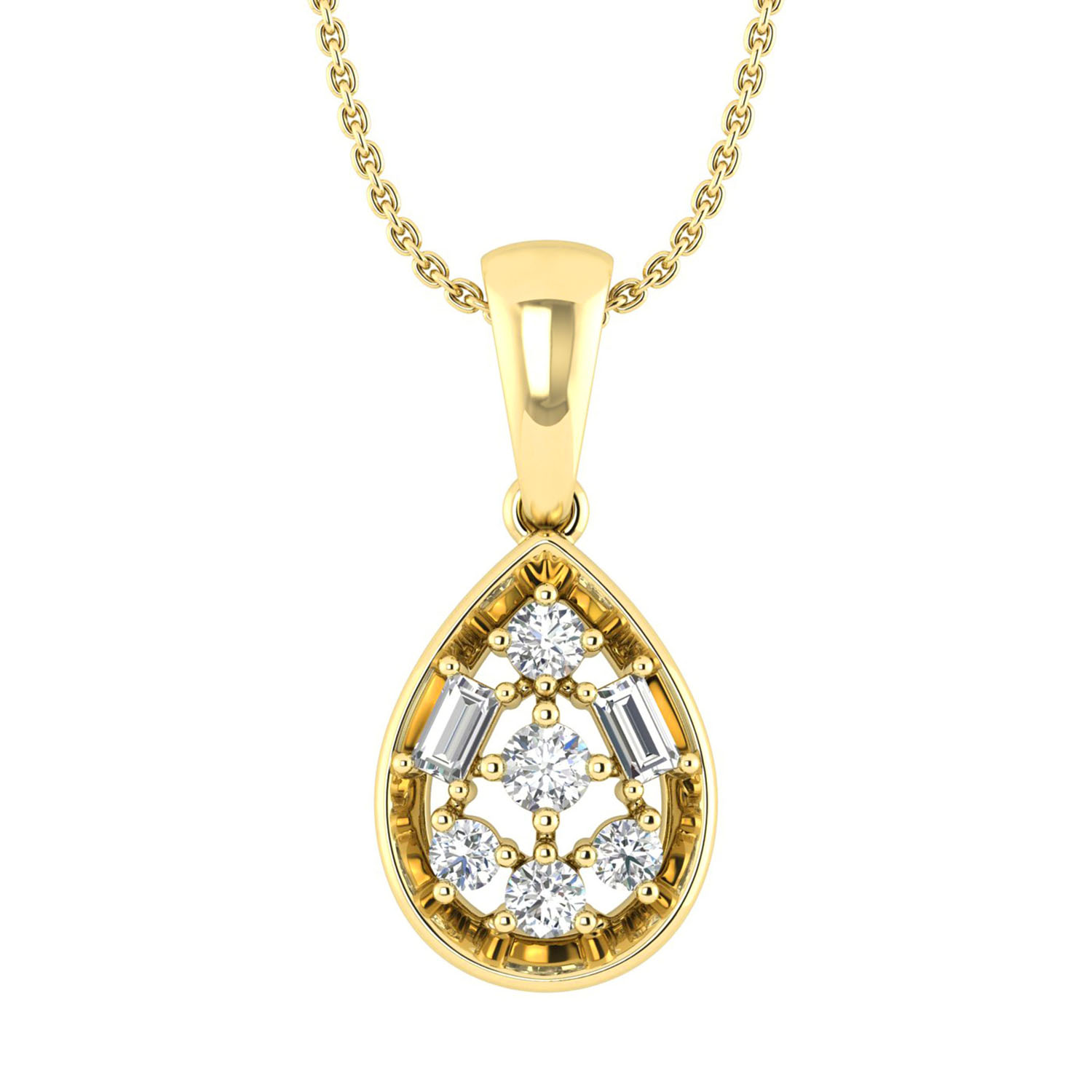 LADIES PENDANT WITH CHAIN 0.20CT ROUND/BAGUETTE DIAMOND 10K YELLOW GOLD