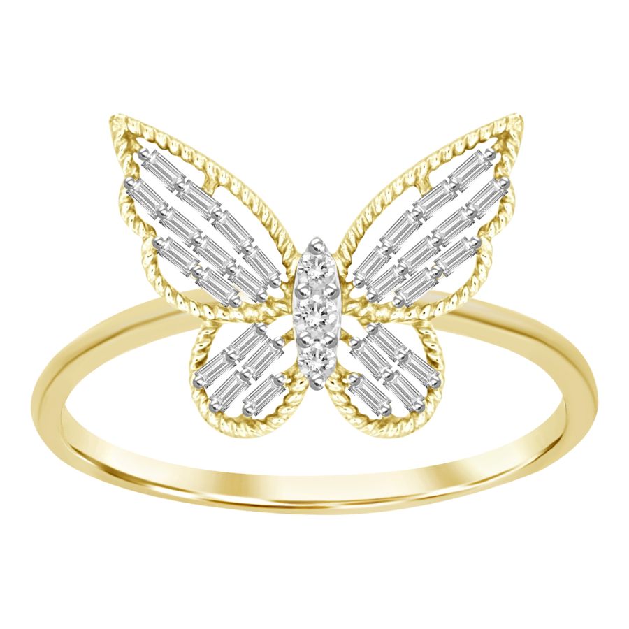 LADIES RING 0.25CT ROUND/BAGUETTE DIAMOND 10K YELLOW GOLD