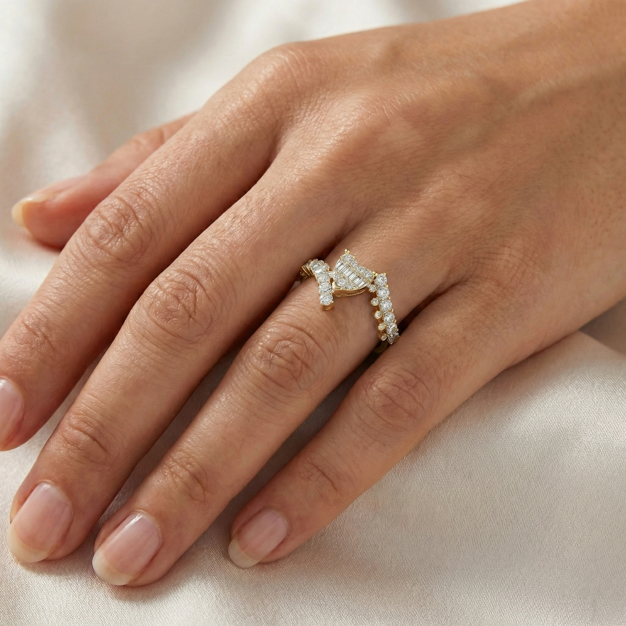 LADIES RING 0.65CT ROUND/BAGUETTE DIAMOND 14K YELLOW GOLD