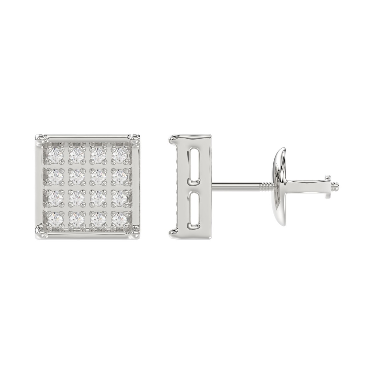 Sterling Silver White 0.10CT Round Diamond Yuva Square Cluster Earrings Women’S Fine Jewelry